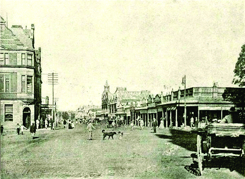 Prav živahno je na cesti v Johannesburgu. Tramvaji, izvoščki, privatni vozniki in pa ročni vozovi črnih zamorcev posredujejo gibanje. Med temi hitijo premnogi kolesarji in mnogi jezdeci sem in tje. — Razven teh se pomika po cesti težki tovorni voz, v katerega je upreženih osem do dvanajst oslov. Kaj čudna je velika »potujoča hiša« Burov, to je velik voz, katerega vleče navadno 20 volov.