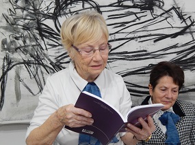 21. februar 2024 - Odprtje razstave Bože Majcen: Rojeno v morju - Ob 17. uri smo v galeriji RRRudolf odprli razstavo Rojeno v morjuBože Majcen, članice likovne skupine ruštva medicinskih sester, babic in zdravstvenih tehnikov Maribor, ki jo vodi Irena Gajzer. O avtorici in razstavi je v uvodu govoril likovni kritik in kustos Mario Berdič. V programu odprtja je nastopila s petjem Lina Kovač in s pesmimi Janez Dreu. Z nagovorom je razstavo odprla predsednica Društva medicinskih sester, babic in zdravstvenih tehnikov Maribor Ksenija Pirš.