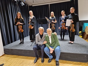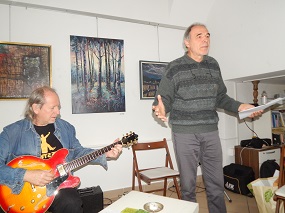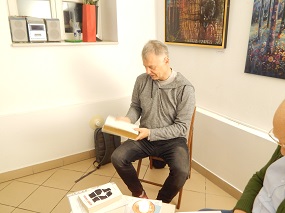 22. november 2025 - Jože Kos Sine in Peter Andrej: Pesniški zajtrk - Na soboto, 22. novembra, smo gostili na pesniškem zajtrku Jožeta Kosa Sineta in Petra Andreja. Jože Kos Sine je poleg starejših besedil predstavil tudi nekaj svojih najnovejših, vse bodo iz raznoterih tematskih in oblikovnih bazenov leposlovja. Vmes ta nekaj dokumentiranih deških duhovitosti iz Jožetove beležke prebrali Mojca Andrej in Karmen Kos. Peter Andrej je ob električni kitari zapel nekaj svojih prepoznavnih pesmi in končal prireditev z Sončno upravo. Privabila sta širok krog znancev in prijateljev.